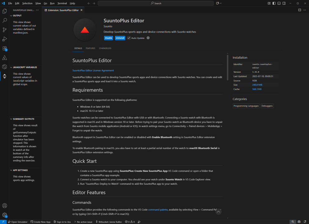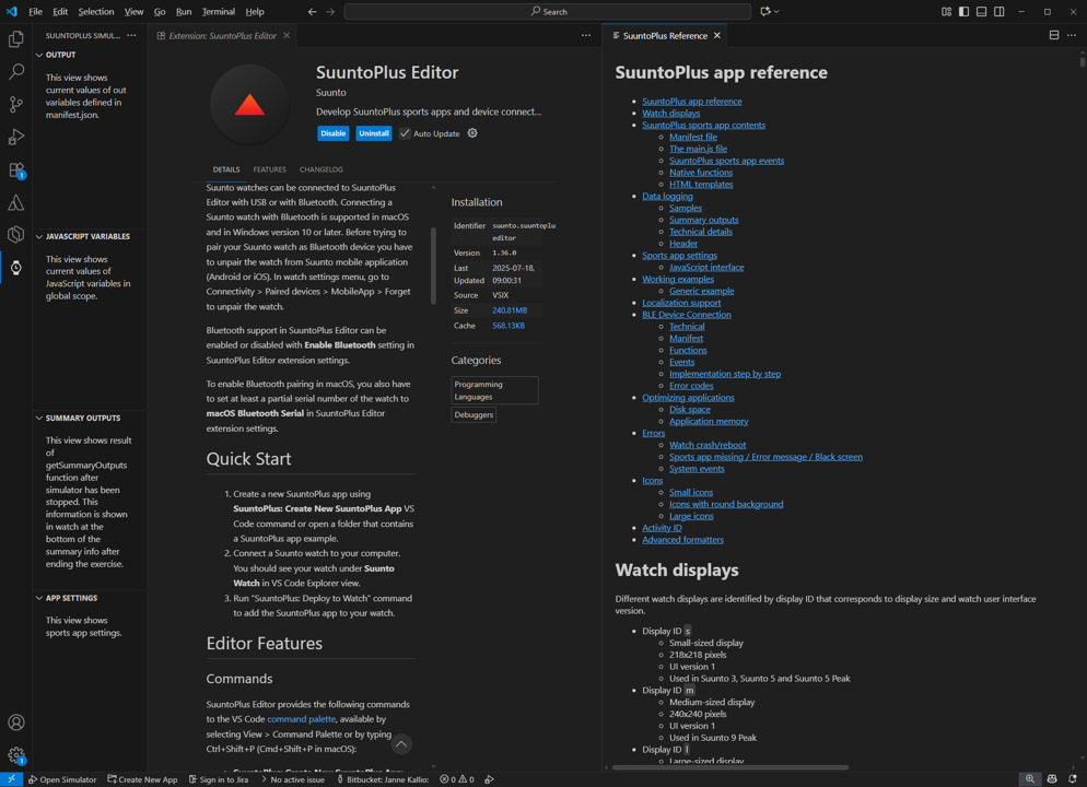 SuuntoPlus Apps view shows a list of SuuntoPlus sports apps in your VS Code workspace. In this view you can: